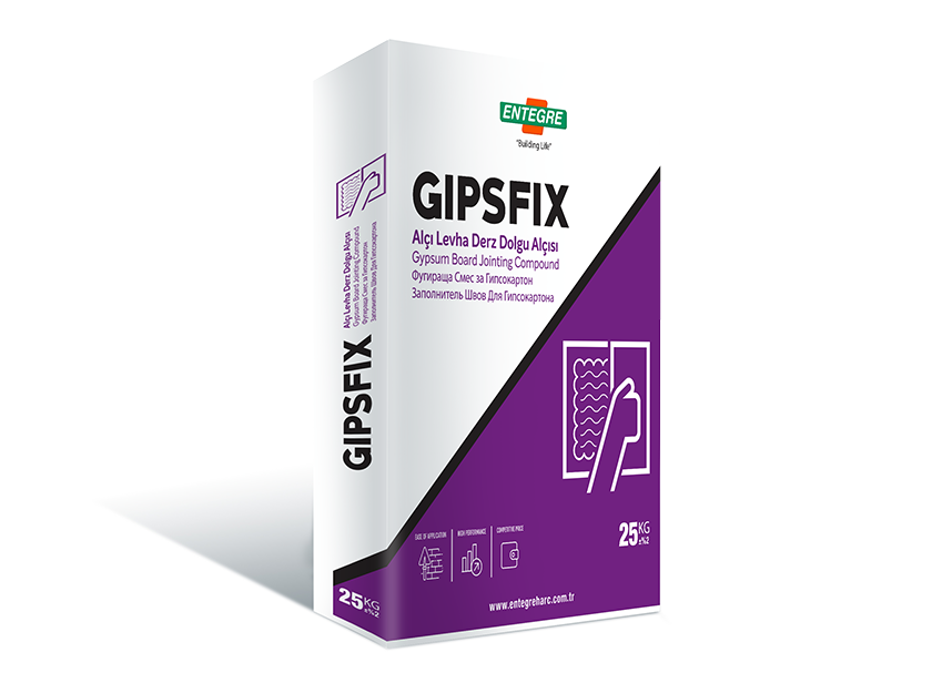 Firstly, add water to the mixing bowl, then add the GIPSFIX (approximately 15 – 16 lt water for 25 kg bag) and mix until the lumps go away. Wait 5 minutes, and mix again to obtain a homogeneous mixture. Apply GIPSFIX to the joint to embed the tape and immediately overcoat to fully fill the tapered board edges. If required, allowing each coat to set before the next application, further applications can be coat.
